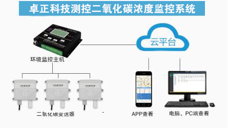 室內(nèi)二氧化碳變送器起到實(shí)時(shí)監(jiān)測(cè)的目的,它將數(shù)據(jù)傳送環(huán)境監(jiān)控主機(jī),通過小主機(jī)將數(shù)據(jù)上傳至云平臺(tái),用戶通過登錄卓正科技云平臺(tái)查看辦公室內(nèi)的二氧化碳濃度變化。